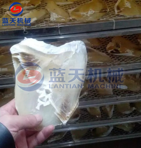 4、烘干:將魚(yú)體洗刷一次,除去沾染的污物,滴干水后,排放于特制的烘干盤(pán)上。推進(jìn)熱泵烘干房,開(kāi)啟主機(jī)的控制面板進(jìn)行烘干,烘干過(guò)程由電腦版全自動(dòng)控制,無(wú)需人工值守,一般海魚(yú)的烘干時(shí)間在22——28個(gè)小時(shí)左右。
