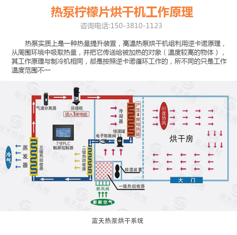 三:將檸檬片整齊的擺放在通風的托盤上,切忌堆疊,先利用自然風和光照使檸檬片脫去部分水分。將風干24小時的檸檬片轉(zhuǎn)移到空氣能檸檬烘干機內(nèi),設置烘干機溫度為低溫40-50℃范圍,檸檬片的水分需在低溫干燥的過程中緩慢蒸發(fā)并排出,烘干過程約12-13小時。