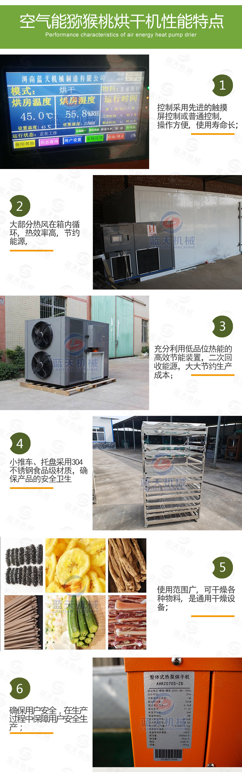 獼猴桃烘干設(shè)備特點:
